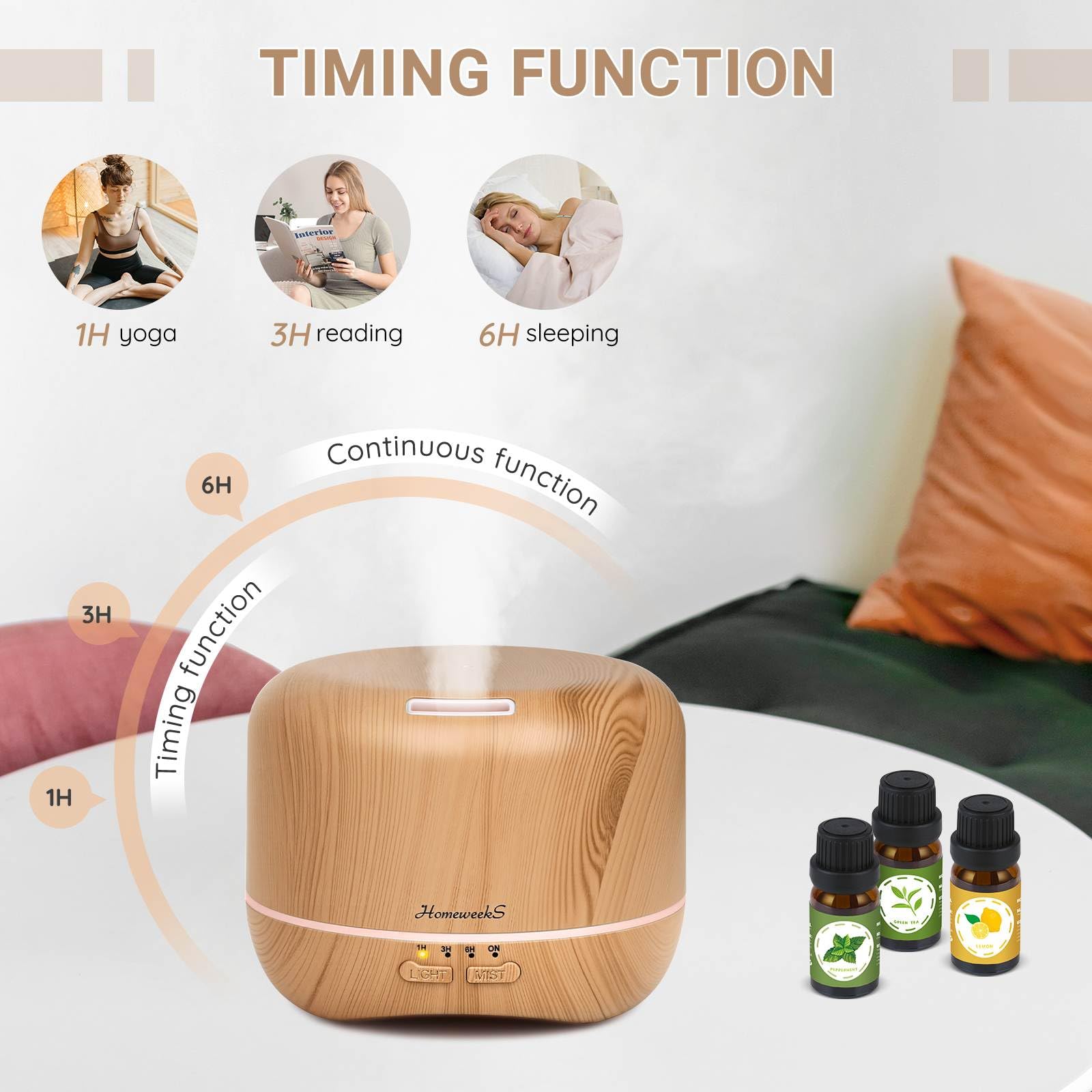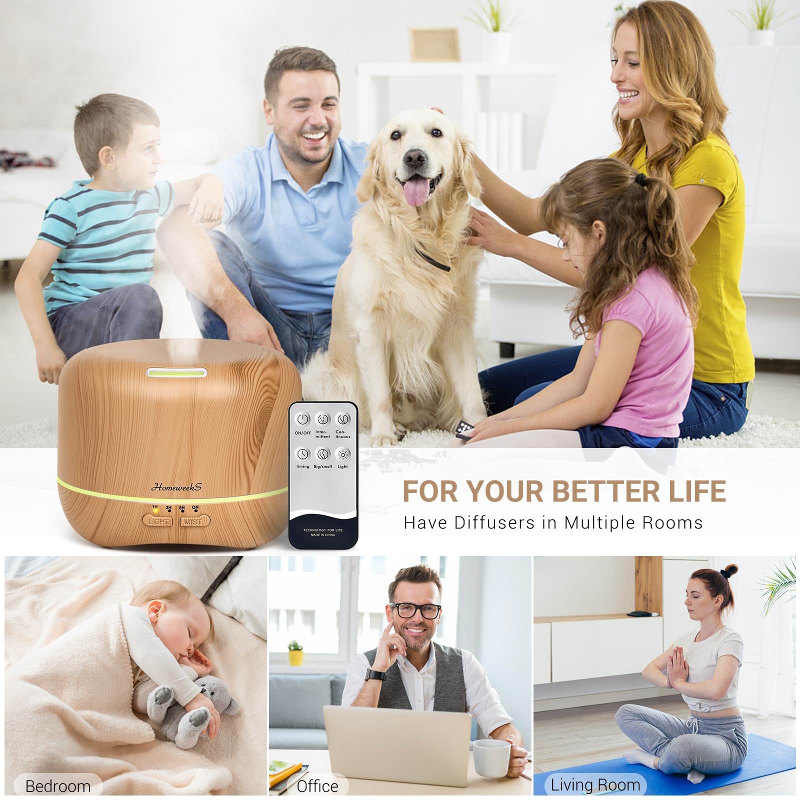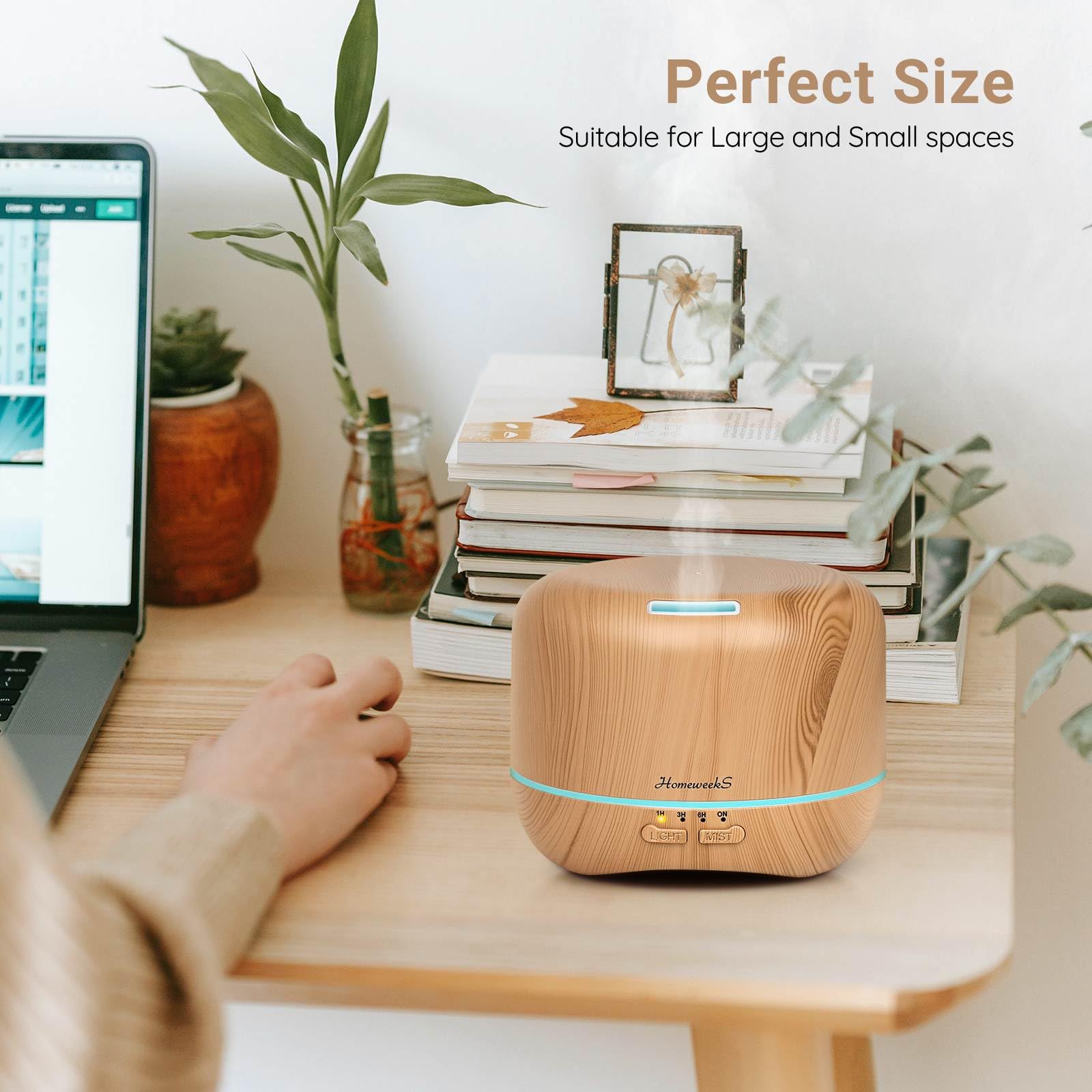The Homeweeks diffuser brings together aromatherapy humidity and soft ambient color into one simple calming device. Its warm wood grain design gives it a natural peaceful feel that fits beautifully into bedrooms living spaces and work areas. With ultrasonic quiet mist and remote control convenience it is an easy way to create a soothing environment any time of day.